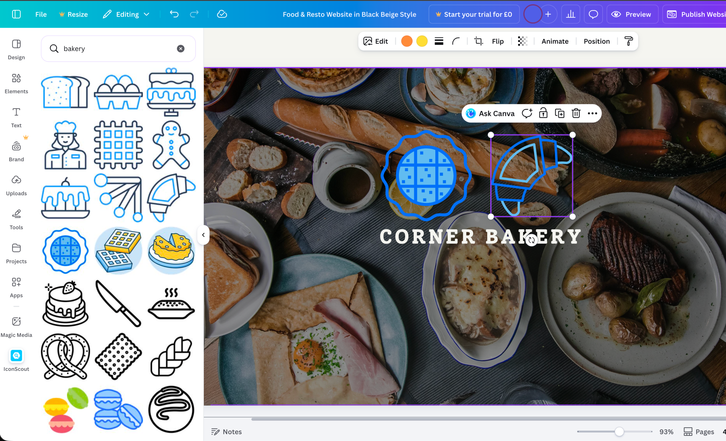 - Canva: Search for icons in your industry, try recoloring them to match your brand