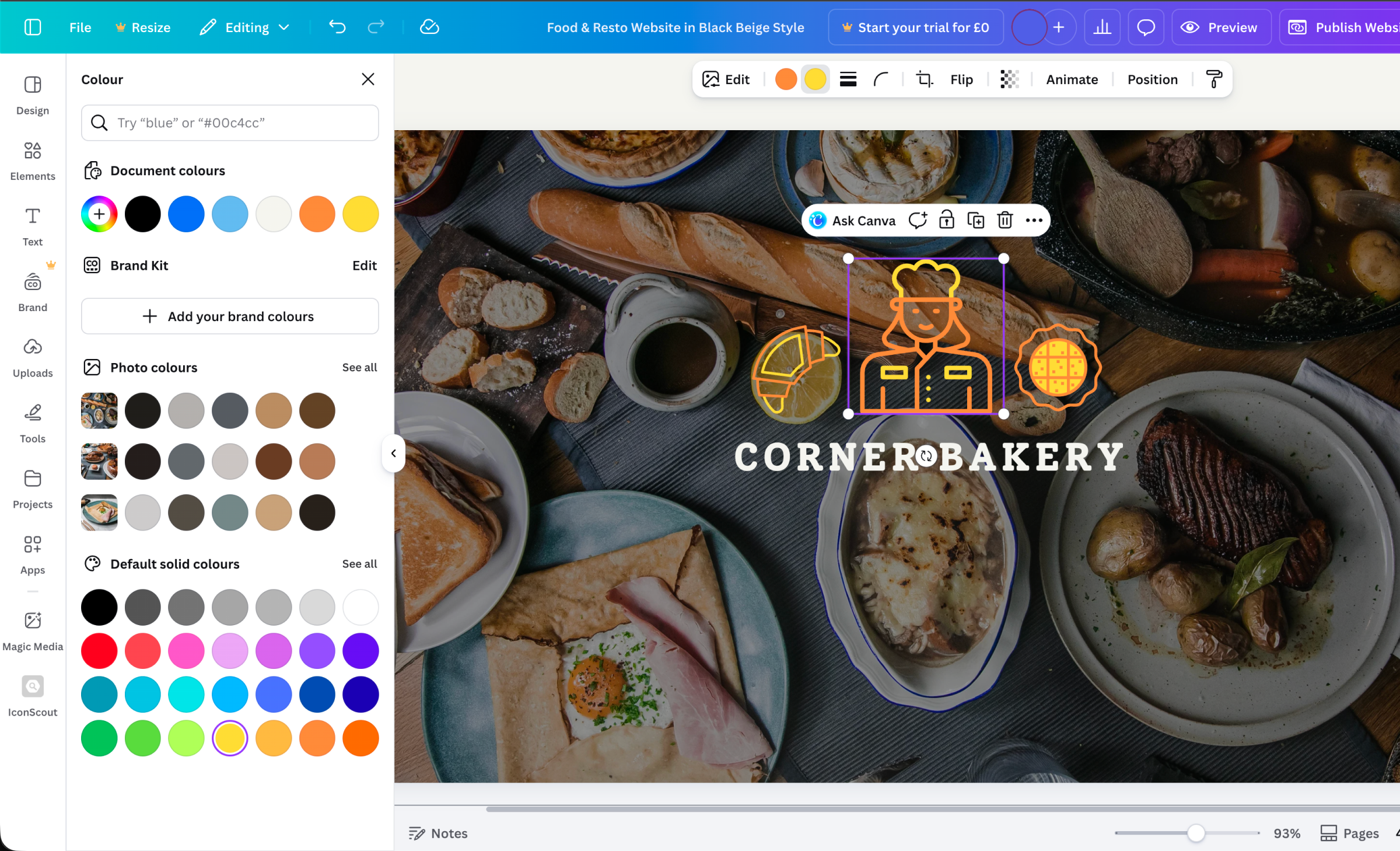 Canva has thousands of icons, but finding ones that match your exact brand colors takes time.