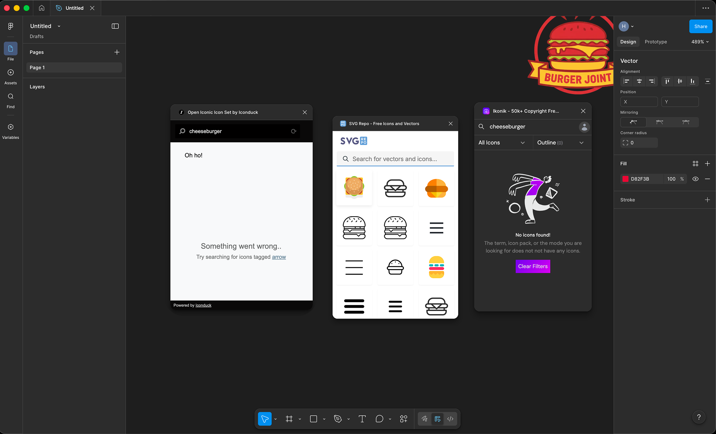 I started where most designers do—Figma's icon plugins. I searched through Iconify, Material Icons, and several premium icon packs.