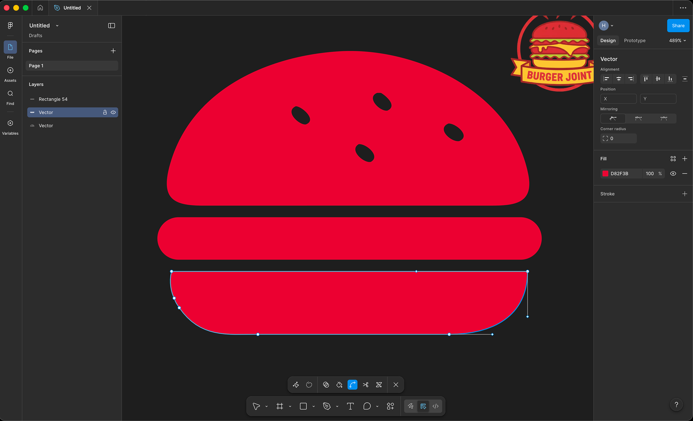 Next, I grabbed the pen tool and tried making icons from scratch in Figma.