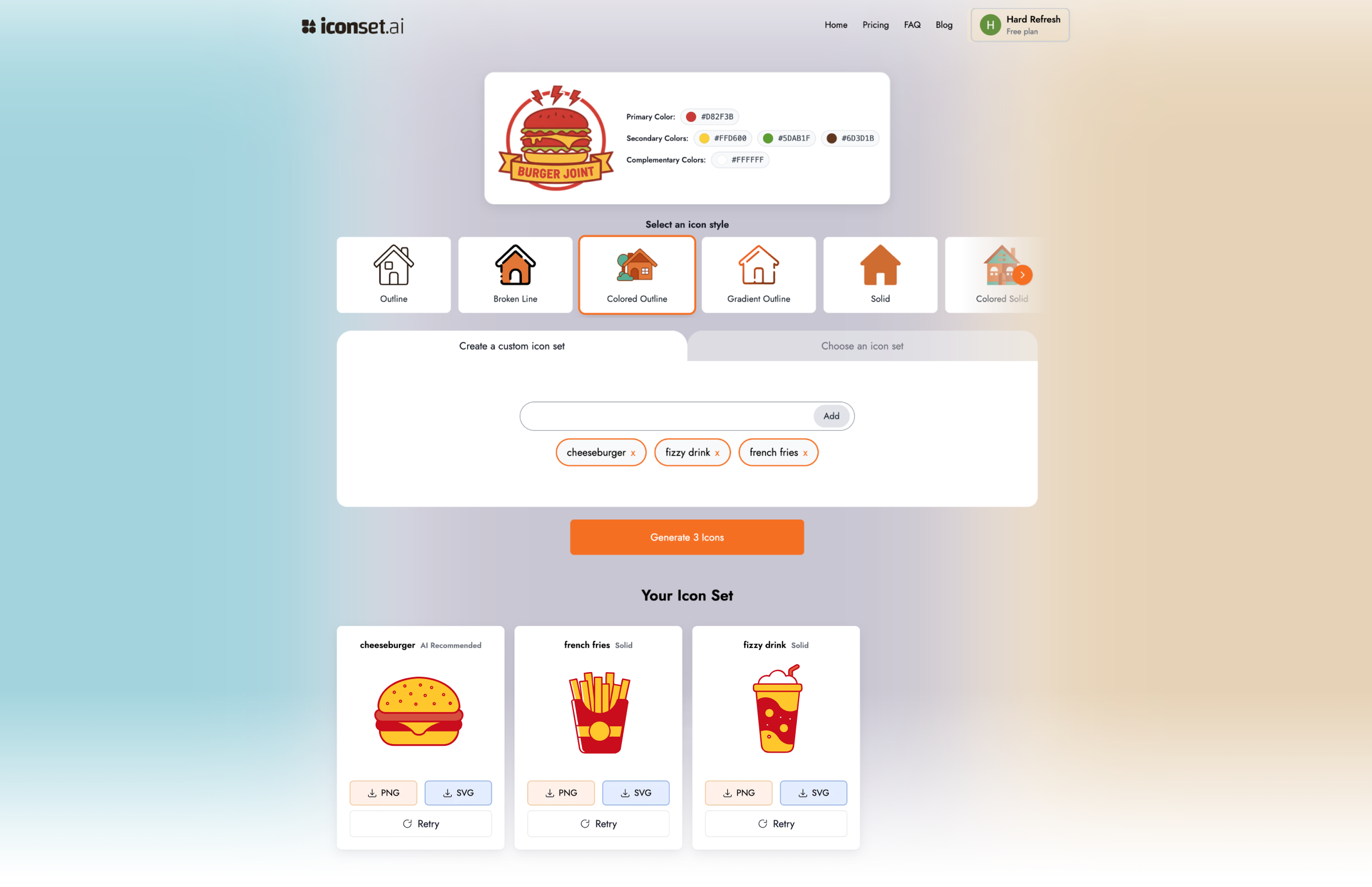I generated all 3 icons in 30 seconds! No manual color picking, no consistency issues, no stress.